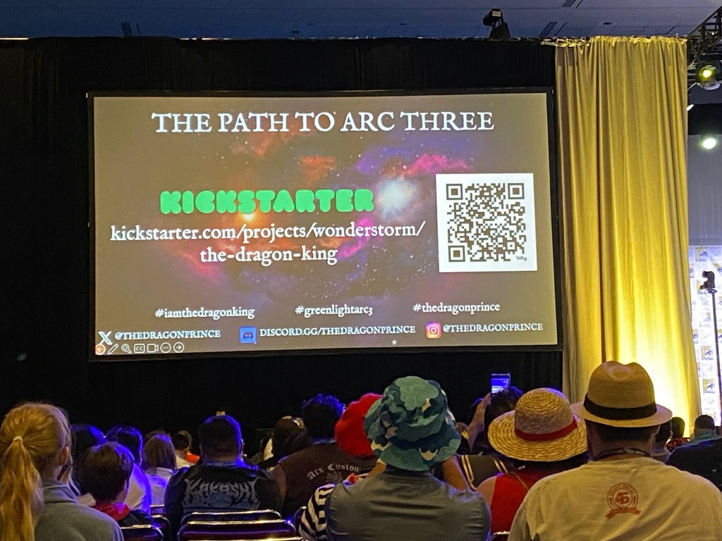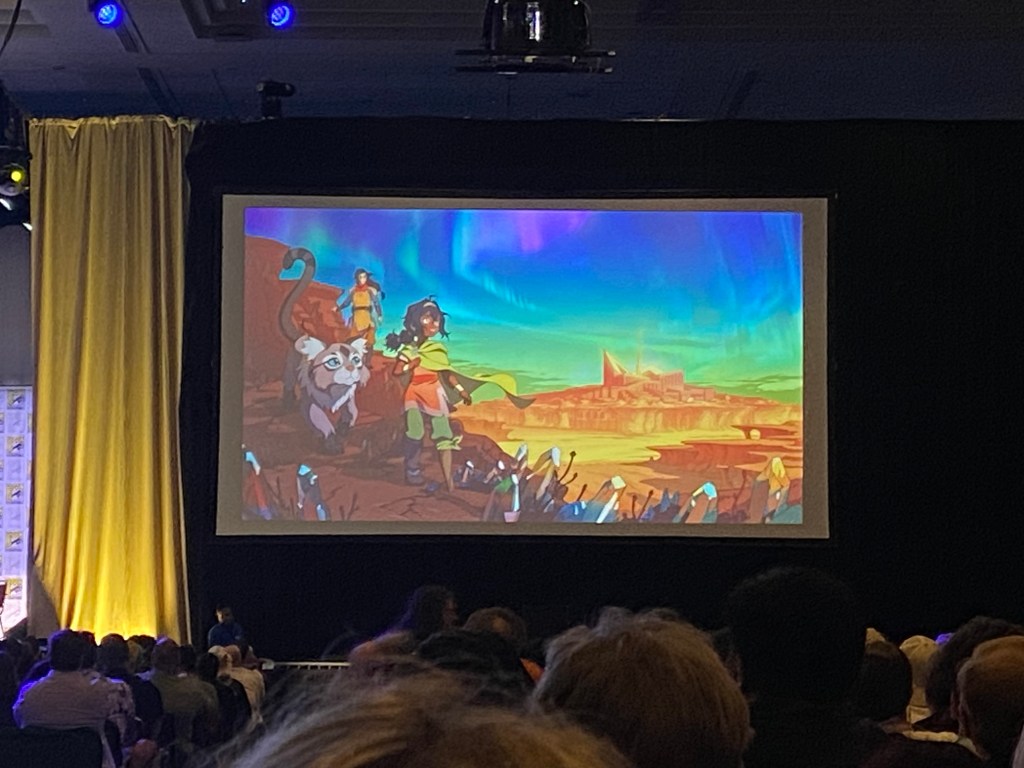 11:15-12:15pm – Panel two was The Dragon Prince: The Next Arc panel (also in Ballroom 20, so I didn’t have to leave the room). The panelists included Aaron Ehasz and Justin Richmond (the creators of the show), Jack De Sena (VA for Calem) and Dante Basco (VA for ___ (don’t want to spoil that reveal from last season). They spoke about the next arc. Which included a big surprise. The next guest dropped in and it was the director of product at Kickstarter. The third arc of the series is called: Azymondias: The Last Archdragon!! And we got to see a mini teaser! The title of the next version of the show is: The Dragon King!! And we got to see a promo image of adult Zym and Ezran!! The next season will be funded via Kickstarter!! The pre-launch page is open and available to follow. It’ll launch soon, not sure when. Then we got a sneak peak of the opening title card. It looks great! And we were introduced to one of the new actors, someone from Critical Roll who will play a dragon. We ended off with a Q&A time. Regarding some of the questions: The creators have known what the last minute of the show’s story would be from early on in the first season. There will be call-backs from throughout the show in this next season. They may look into how Calem and Ezran’s powers work within the world’s rules. I loved swing at this panel! I was very surprised by the kickstarted aspect. I can’t wait for more from this series!