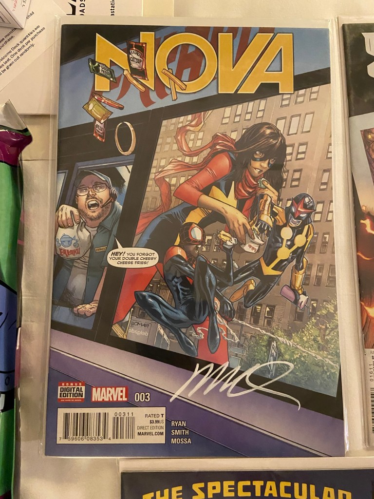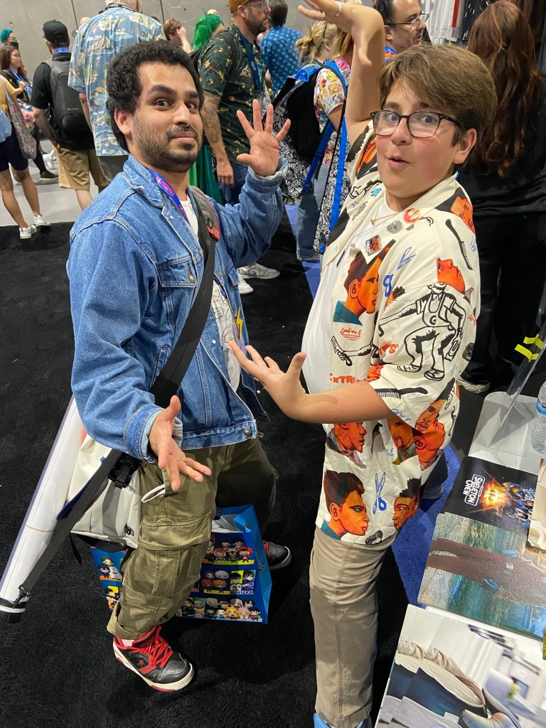Before I left for the day I stopped by Artist alley again, my first stop was the famous artist Humberto Ramos’s booth. I bought some signed back-issues and talked to him about how much I enjoy his art, especially his work on Champions and Strange Acedemy. He said he loved Champions and was very appreciative of my kind words. Then I stopped by David Nakayama’s booth and chatted with him again about what I’d been doing during the day.
