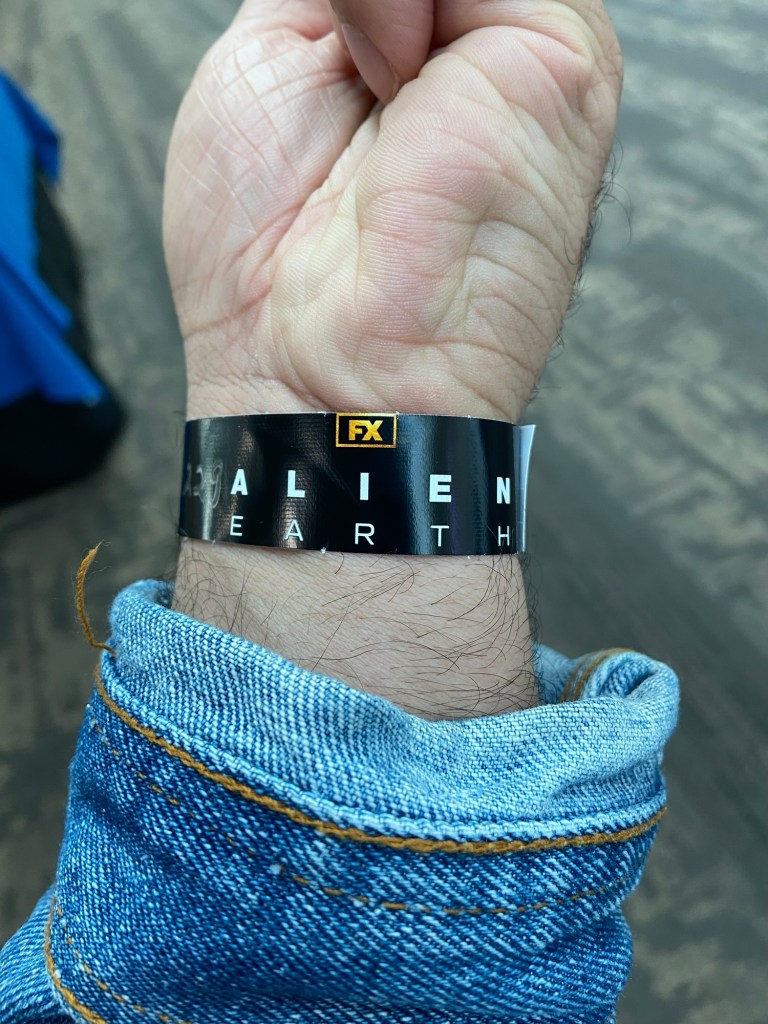 7:33-7:40am – I got my wristband for a signing later that day. This was one of the two exclusives lottery things I got. This was a signing by the showrunner (Noah Hawley) and cast of the upcoming series: Alien: Earth.