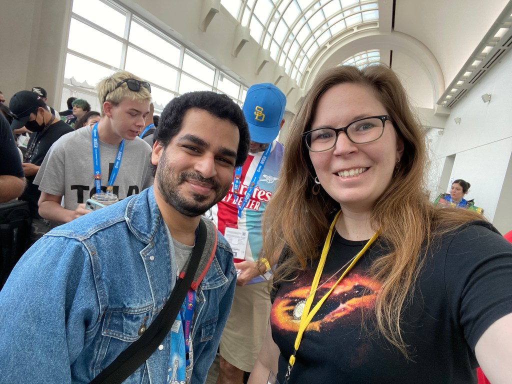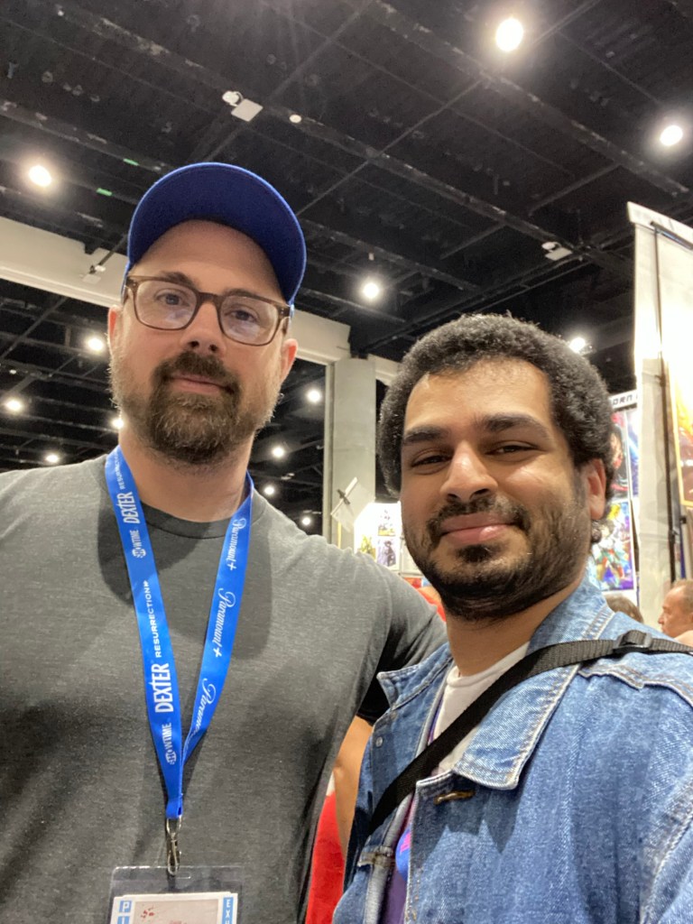 The next person I got to meet, was a podcast host of a podcast I’ve watched since March 12, 2015. Though this host hosts a secondary version of the podcast. His name is Christian. He’s a wonderful person who I’ve enjoyed chatting with over the years. I’ve always had good experiences with all the hosts of the podcasts I started watching back then and I’m glad that this show is still going whereas the others stopped a while ago. It was great to finally meet him! We talked about what I’d been doing at the convention and that he’d be mentioning my live-tweets from being in Hall H on Saturday on the next day’s episode of the podcast. I’m happy we were able to meet, I wasn’t sure it was going to work out.