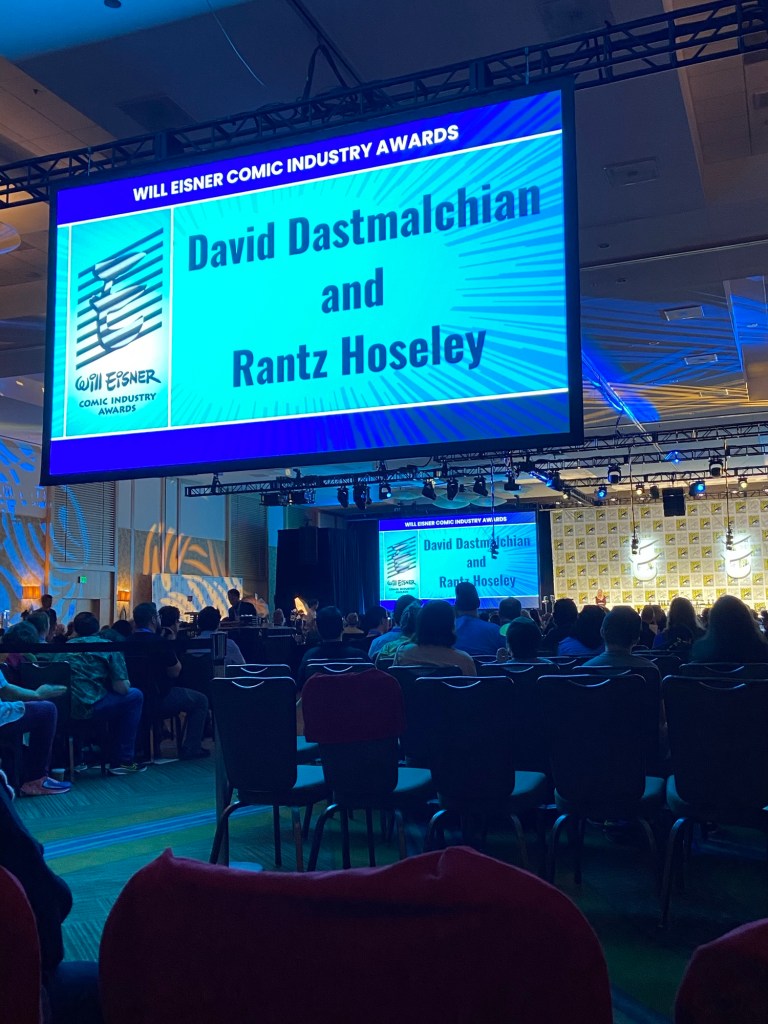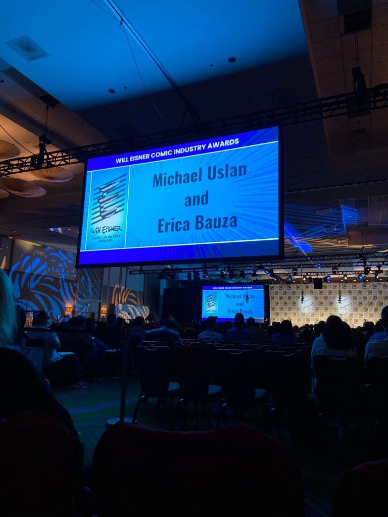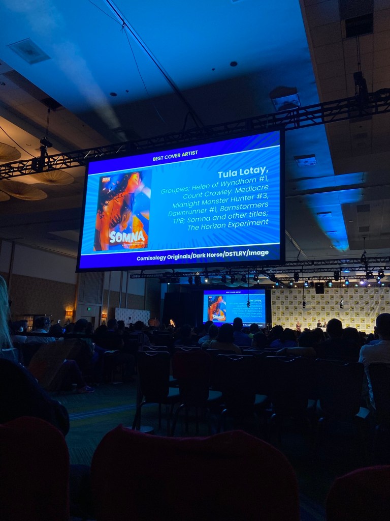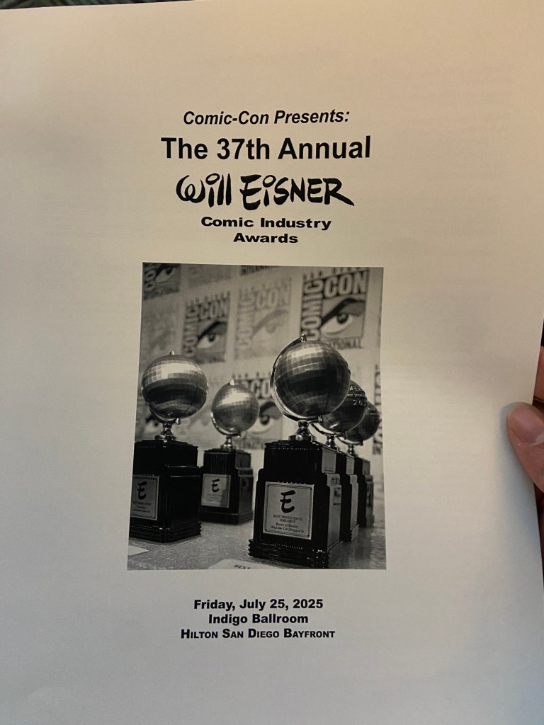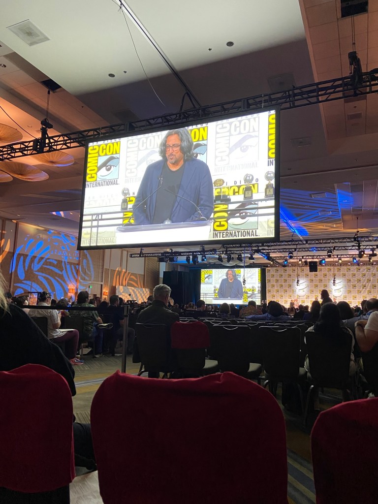 8:00-11:00pm – I attended the 37th Eisner Awards!! All SDCC attendees are allowed to attend these awards each year. Normally, I’ve always been in the Saturday Hall H wristband line and was never able to attend this ceremony. I was very happy to be able to. The Eisners are the big awards for writers, artists and such in the comic book world. We are kept separate from all the big names of course, but it was still an enjoyable experience. I learned about some new books and celebrated some artists and writers I know of who won awards that night. Then I went back to the hotel to sleep.