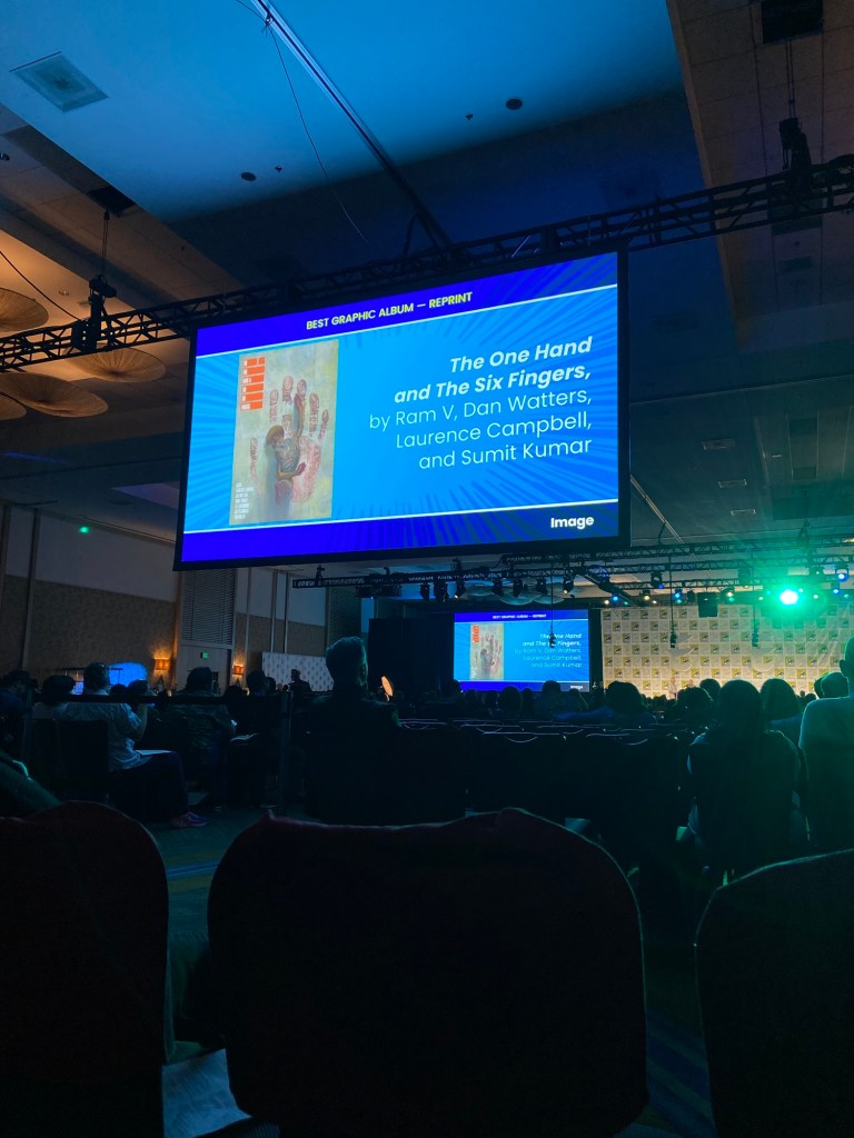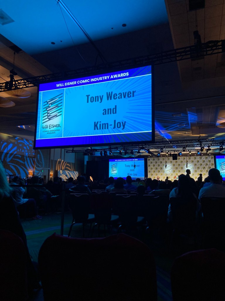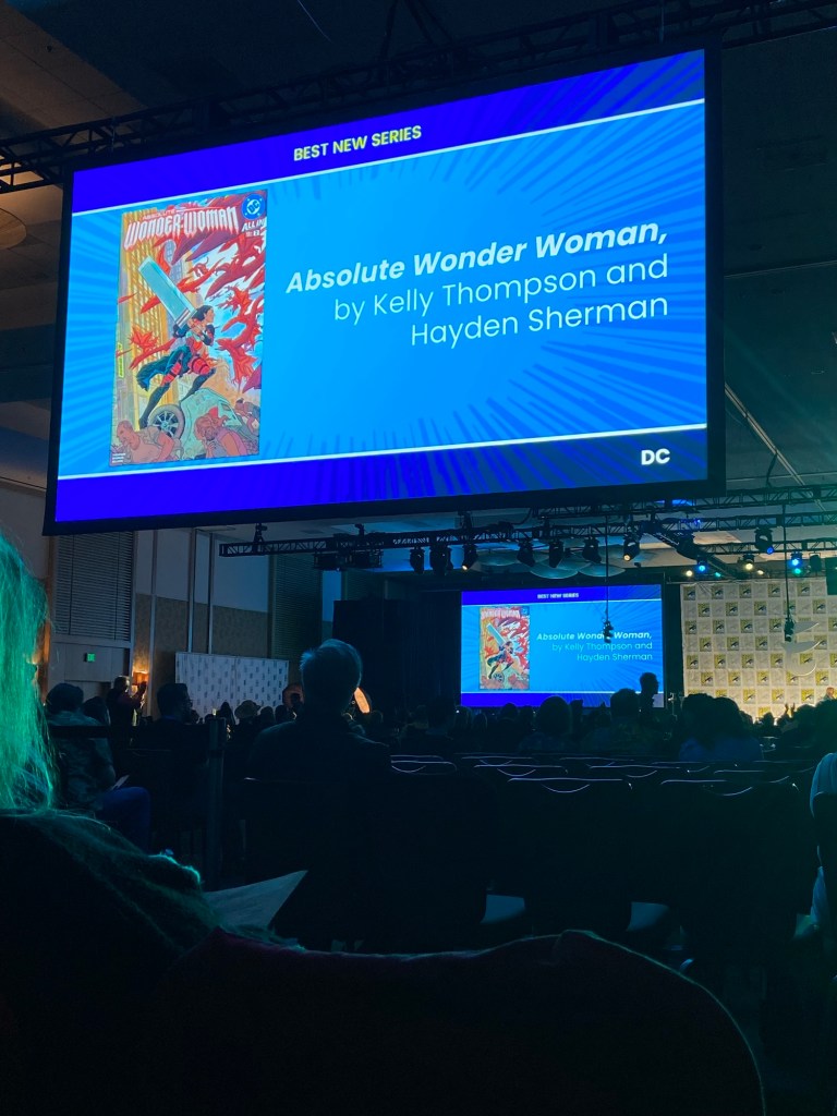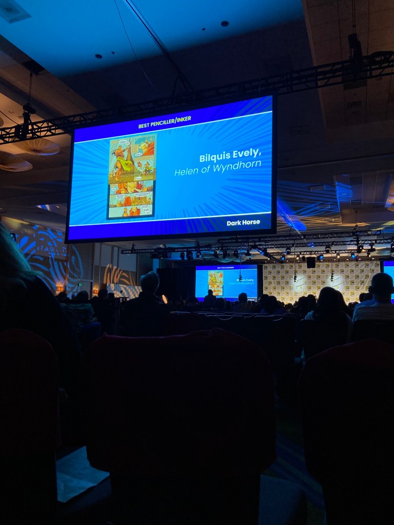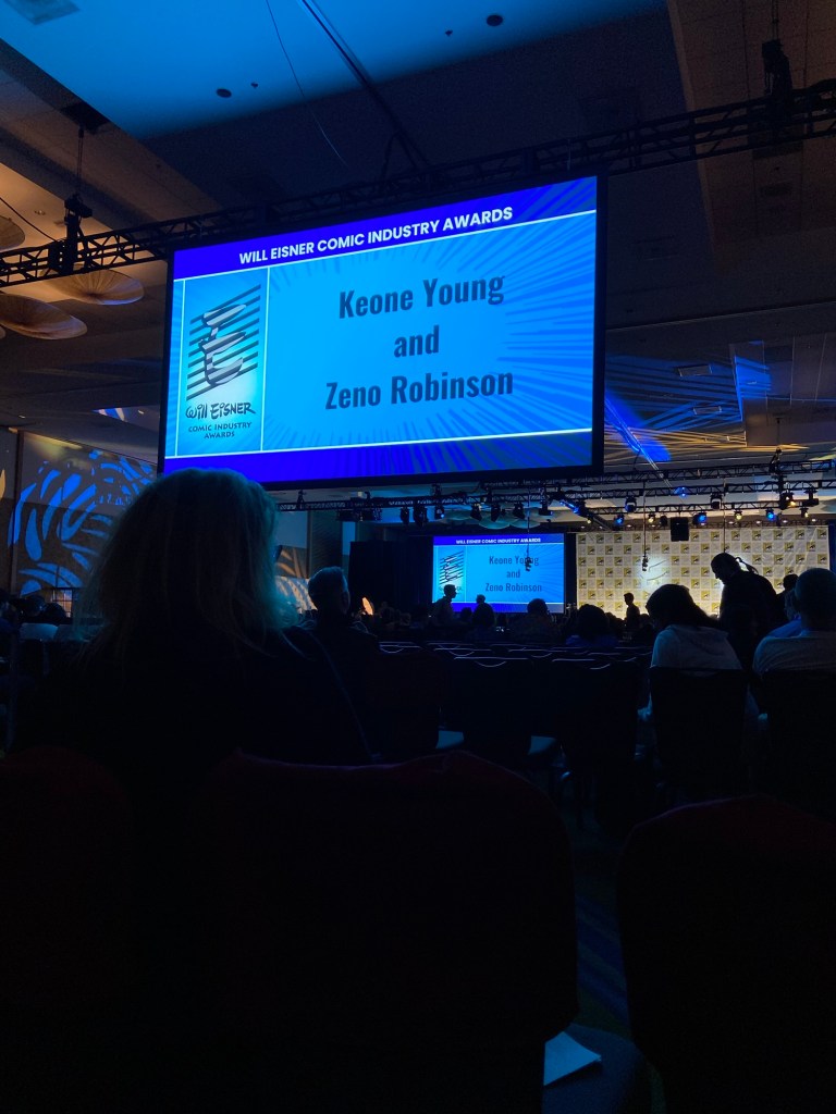 8:00-11:00pm – I attended the 37th Eisner Awards!! All SDCC attendees are allowed to attend these awards each year. Normally, I’ve always been in the Saturday Hall H wristband line and was never able to attend this ceremony. I was very happy to be able to. The Eisners are the big awards for writers, artists and such in the comic book world. We are kept separate from all the big names of course, but it was still an enjoyable experience. I learned about some new books and celebrated some artists and writers I know of who won awards that night. Then I went back to the hotel to sleep.