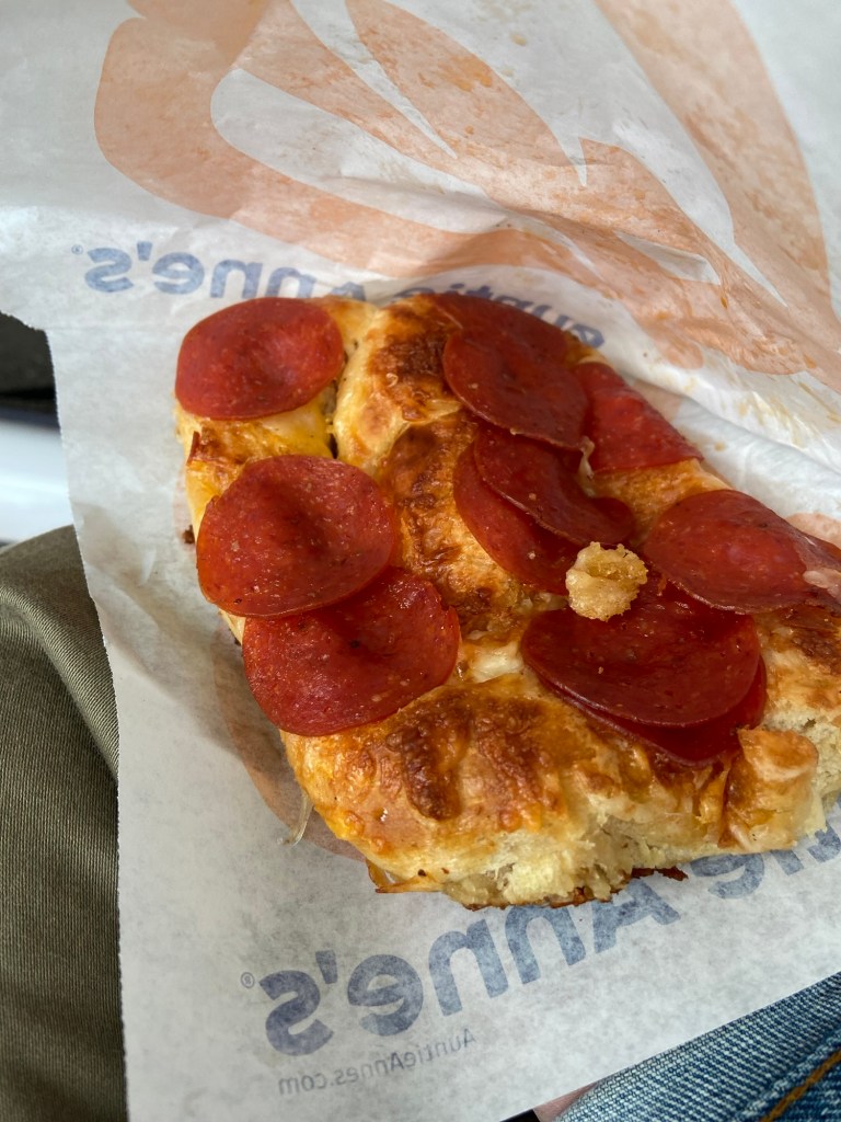 You know what? Pizza pretzels are very good. That was my lunch, haha.