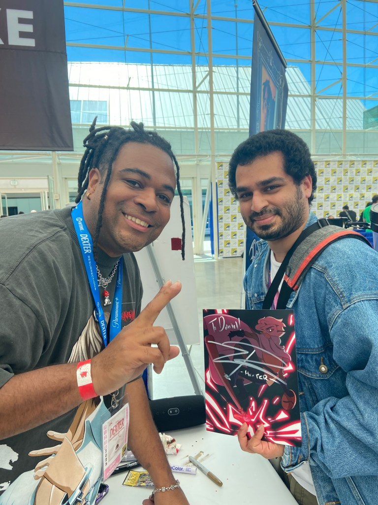 Right after that I met the voice actor Zeno Robinson!! I told him how much I enjoyed his role as Hunter on The Owl House and his other roles. I told him that he’s the second Owl House actor I’ve met, last April I met Mela Lee (Kikimora) at AwesomeCon. And I mentioned what I got to see at the Amphibia panel and he was excited about that.
