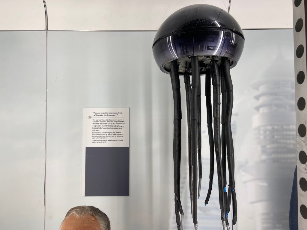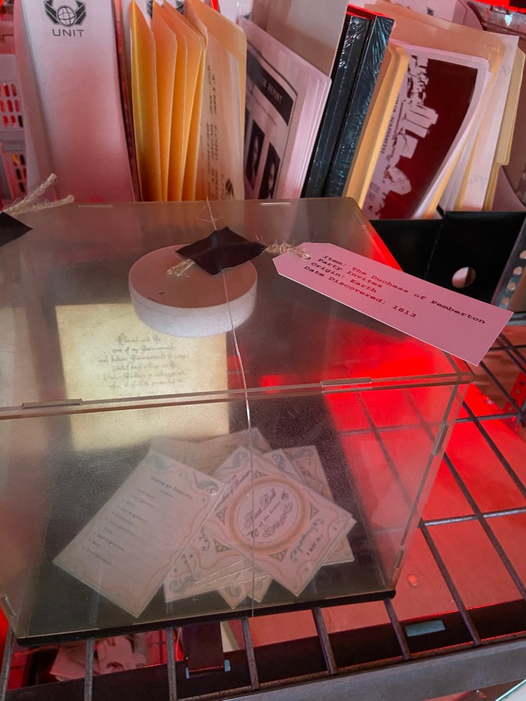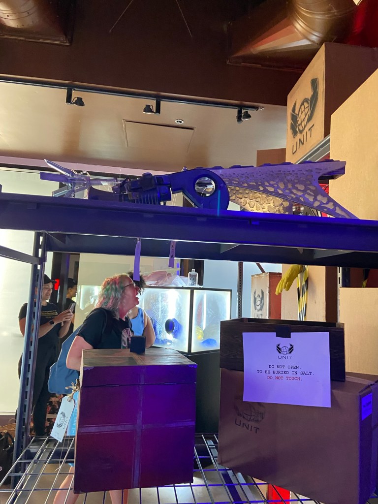 The final SDCC thing I did was go to the Doctor Who pop-up at The Harbor Club. UNIT’s Black Archive. It had a bunch of props and prop replicas from Doctor Who. It hd two parts, a photo-op out front in front of the current TARDIS console and a room that had all the props and stuff. It was made to look like the Black Archive from the show. There was also a nighttime version of the pop-up where it seeming like an escape room or something where you find clues and such but I couldn’t go to that. I will make a separate post about this and another Doctor Who-related thing I did on Monday.