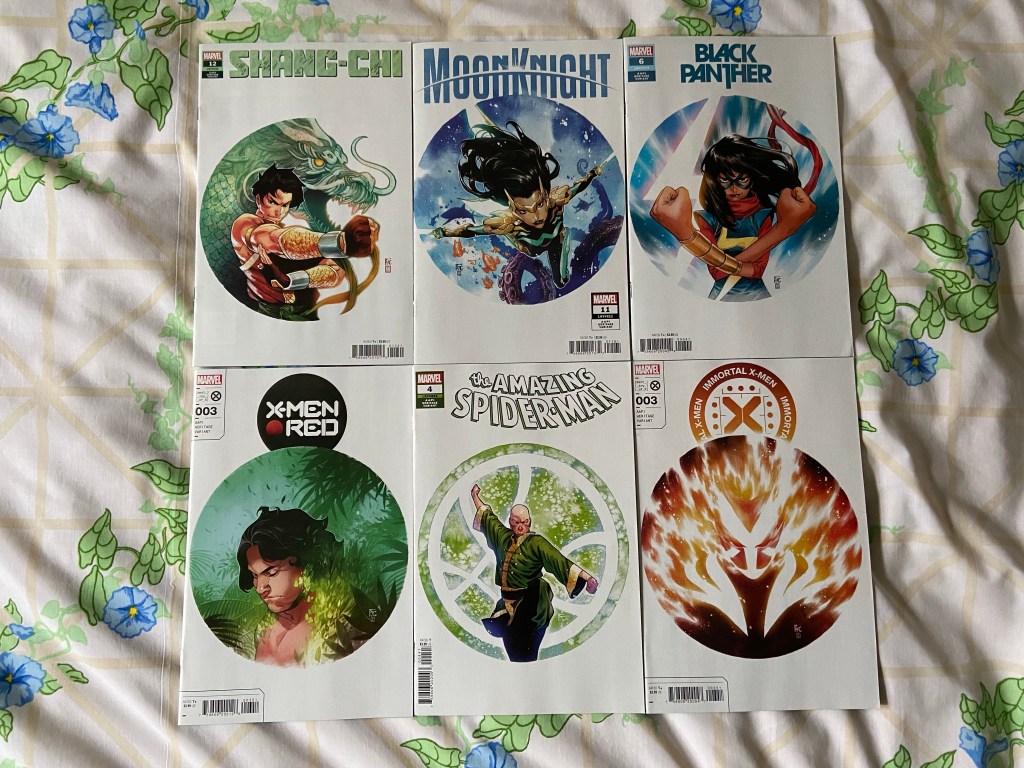 These are all the AAPI Heritage variants that started on May 11th and ended on June 22nd of this year. I certain have talked about what I liked about these when I posted the first one in May, but it’s just such a minimalist design for each of them. Another great use of the white space on the cover. Plus these are all great characters. These are all by Dike Ruan and Neeraj Menon.
